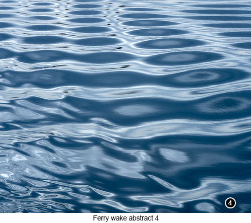 First of all, I will assume you are sailing over to the Island of Harris and Lewis by ferry, by making your way across the 'Little Minch', from the Uig ferry terminal on Isle of Skye. So again, assuming that you have already made your way up to and then onto the Isle of Skye. If you then continue driving into the island, along the A87 after crossing over the Skye Bridge. Just keep heading North on the A87 and all the way up towards the main ferry terminal at Uig, 52 miles further North up the Island. The village of Uig is pronounced locally as "Oo-wig" by the way, but where the "Oo" part of the name is pronounced like "who", but without the "h"). Isle of Skye ferry terminal at Uig, Map view, Street view. Then once on the ferry, for your 1 hour 40 minute sailing across to the Isle of Harris and if the sea is calm(ish), then get ready to shoot the wake behind the ferry, with your 70/200 lens mounted on the camera. So get up onto the viewing deck at the back of the ferry as quickly as you can, then as the ship steers a curved route out of the harbour, start shooting the arcing wake behind the ferry and the amazing abstracts that the waves will be creating for you. As shown here in SHOTS 1, 2, 3 and 4. But don't worry if you can't find anything to shoot leaving Uig, because when the ferry arrives in the port of Tarbet on Harris, it has to meander its way around several small islands, before it gets into port. So there should be plenty of opportunity, to shoot wake abstracts at this point as well. Also on the crossing over the Little Minch (what the body of water, between Skye and the Outer Hebrides is colloquially known as), you will find there will be plenty of opportunity, to shoot the various islands and the weather out at sea. As well as lots of wild life, such as seabirds, otters, dolphins and porpoise etc. Isle of Harris ferry terminal at Tarbet, Map View, Street View. You are also going to need to select a fast shutter speed, when capturing these types of wave abstracts, of around 1/200th of a second or higher. To stop the movement of the waves and freeze them in motion. You will also want to use a deep depth of field, of at least f/16. Because you will be shooting the wake abstracts, relatively close to the  |