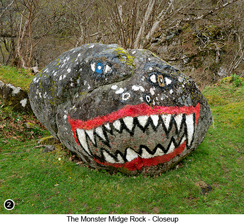 Here is another one of my more recent photographic location discoveries, that I know has way more potential then almost all of the photographs I am going to show you throughout this chapter. So that is why I definitely intend to return to this tiny, hidden away bay, in an attempt to shoot it during a sunset at low tide and which I am now advising, that you should also consider doing the same. So who knows, maybe I will see you there? Setting the scene: There is a legend (isn't there always in Scotland?) that the area surrounding Ardtoe Bay, is the home of the fearsome Wolf Woman of Ardnamurchan. Who is said to rome around this area of coastline each night, looking for people to eat for her supper and who has even had local villagers writing poetry about her, to warn you of her presence and to tell you why you should never be out at night and alone in this area: Among the mountains' midway rocks, -------------------------------Wendy Wood This legend of the Wolf Woman of Ardnamurchan, is thought to have arisen back in the day, when real wolfs still roamed around this area of Scotland looking for prey. It is about a young girl from the village of Acharacle, who found herself walking across the heather moorland on a dreich winters night, to the village of Glenborrodale. When a large grey wolf jumped out of the mist and attacked her, sinking its fangs deep into her neck. Yet even though she knew she was mortally wounded, as she began to lose large amounts of blood from her wound. She still managed to pull off her apron and ram it into the wolf's throat, as it lunged up at her once again with its jaws wide open, coming in for the kill. The wolf then tried as hard as it could, to dislodge the tight ball of cloth now stuck in its throat, by shaking its head. But soon realised it could not dislodge it and neither could it breath, so collapsed dying at her feet. But due to the continuing loss of blood pouring from her neck, she too began to lose consciousness and fell on top of the dying wolf. And where it is said, that they both died together at the exact same moment. With both of their souls simultaneously rising up out of their bodies, to mingle and blend into one. How to get there: Tioram Castle to Ardtoe Bay is around a 7 mile drive and which should take you only half an hour or so to drive. But as there is much to see and photograph on the way, I would advise that you probably need to allow yourself, at least a couple of hours to complete this part of your journey. So first of all, you need to drive back up and along Dorlin Road, the same way you came in to the Tioram Castle area. Until you eventually rejoin the A861 at a 'T' junction and where you will now see a sign, pointing you towards the Village of Salen further along the A861 on your right, Street View, Map View. Take this right hand turn. Now continue all the way down this road and all the way to the very end of it, where you will first pass by the infamous 'Monster Midge' rock, as shown below in SHOTS 1 and 2. And then onto the tiny village of Ardtoe, with its reasonably large official car park and its honest box payment system, Street View, Map View and park your vehicle here. I believe the honesty box payment was £2 the last time we were there if I remember correctly and which you can pay, by placing a couple of £1 coins in a small letter type box, that you will see in a door at the opposite end of the car park. So having now paid your parking fee, walk out of the car park and turn immediately right. Then continue on walking past the first small beach area on your left, with its large ugly pipe at low tide and then on past a couple of houses and caravans on your left, then around to the entrance to the beach a little further on. My first and probably most important piece of advice that I can give to you for this location, is that if you want to get anything worthwhile photographically, then you need to be here at or around, a 3/4 ebbing tide. But even better than that if you can time it, is to be here when there is going to be a really low tide in winter, as well as where that low tide coincides, with the time the sun is due to set. And this is why I need to go back here, as I know this has the potential to be an amazing seascape location for a sunset shoot, even though I wasn't able to stick around for it this time. So we will just have to go back. |