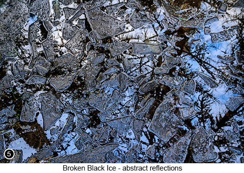 We then walked up to the top of the hill to the second stone bridge, before heading back down the other side. But where the river is mostly obscured by trees and so shots were limited. But I did stumble across this interesting abstract view, of a small muddy puddle covered in black ice, as shown in SHOT 5 below. So being the opportunist I am and that we all need to be, especially if we want to see things, that no one else would think to take a second look at. I set up my kit and grabbed a shot of it, so that it reflected the bare winter trees and sky above it, against the broken black ice. Tip: The falls of Bruar, no longer has a natural flow that depends solely on the weather. But instead has now been dammed off further up the hill, as part of a local hydro electric scheme. So even though the flow is kept to a constant, there are times when it can become a lot more forceful than others. Which means you can arrive here and the flow is low, only to then hear the rush of a large body of water, gushing down the hill as they open the floodgates - which is exactly what happened to us on our second visit and is why you will see several NO BATHING signs, dotted around. |
