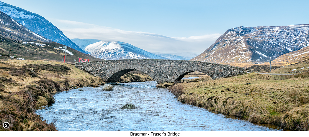 A Landscape Photographer's Road Trip Through The Cairngorms (Part 1 of 2) Braemar's 1715 Commerative Stone, The Fraser Bridge of 1752 and the Cairngorm Mountains |