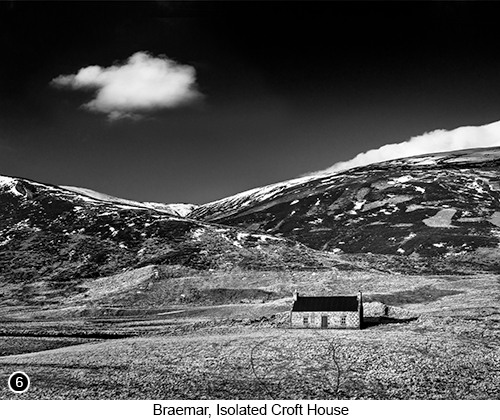 Having now taken your version of the shot shown above, go back to your vehicle and continue driving up into the mountains for another couple of miles, until you come to this next easy to shoot scene, of this cute little isolated old stone built croft house, that you will find stands in the bottom of the glen to your right, as shown in IMAGE 6 on the left, Street View, Map View. And that I was also able to line up and compose in such a way, that it too ticked as many of those little compositional boxes as I could make it tick. Yes folks, there can indeed be occasions in this weird and wonderful thing called landscape photography, when it is simply a matter of being there, getting out of your vehicle to cross a road, as you bring the camera up to your eye to hit the shutter release button and bingo, it's a wall-hanger shot. Admittedly, this doesn't seem to happen very often, but on this relatively short stretch of road, it happened to me twice here with the tree and the old croft house and then a couple of times more just a little further on up the hill and down the other side, which is amazing. OK, moving onto the next shot in this sequence, after capturing your version of the cute little croft house and the undulating hills behind it, as shown on the left and which I found to be more than a little reminiscent of the Ying and Yang symbol when I was shooting it. Next return to your vehicle and continue to drive up the hill until you reach a large official car park on your left, about half a mile below the peak of the ridge and just before the ski resort and ski lift facilities, Street View, Map View. |