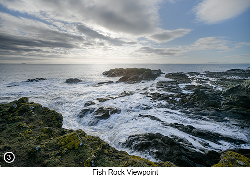 How to get there: To get to the village of Elie from the village of St Monan's, first drive back up and out of the village of St Monan's, then turn left onto the A917 heading towards Elie, around 2 and a 1/2 miles further on, Street View, Map View. You will then come to a left turn off the main A917 road (named Wadeslea Road), that leads you into the upper part of the village of Elie - the road is marked with a 'No Through Road' sign and doesn't look as if it's going anywhere, other than the back of a small housing estate. The road is not signposted from this direction, so has no indication that it leads to a large, official car park with toilet facilities. As well as to several sites of great historical interest and many coastal walks, with fantastic views. So perhaps the local authorities don't want you to know about this area for some reason. But anyhoo, you know about it now, so take this left turn down Wadeslea Road, Street View, Map View. Now continue down Wadeslea Road and follow it around a couple of bends to the right, until you arrive at another left hand turn at the side of a field and an unnamed road, Street View, Map View. Take this left turn and head down to the 'Ruby Bay' parking area at the end of it, Street View, Map View. You should now be able to see the Elie automated lighthouse, off to your left at the end of a small spit of land and the path that leads across to it. So grab your gear and your wide angle lens (as this is the lens you will be mainly using) and set off down the path towards the lighthouse, as shown in SHOT 1 above and SHOT 2 below. |
