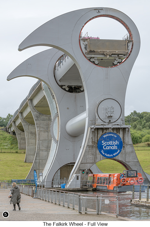 The Falkirk Wheel is an amazing modern miracle of engineering, that really is a pleasure to see working so effortlessly and silently and which applies modern day technology, science and engineering, to a very old mode of transport and method of commerce, namely the old industrial canal network from the early 19th century. The Falkirk Wheel was created to replace the original 11 lock stairway that used to connect the Forth and Clyde canal with the Union canal, being 115 feet above the Forth and Clyde canal, but which were both allowed to fall into serious disrepair back in the 1930's. This type of rotating wheel lock mechanism, was then seen as the only way that these two canals could ever be reconnected again, without major building work and the removal of several new housing estates and district drainage systems. So it was decided by the board of the British Waterways group, with the involvement of seven local authorities in the area, along with the Scottish Enterprise Network, the European Regional Development Fund and the Millennium Commission, to design and replace what remained of the 11 locks system at the end of each canal, with this modern wheel lock structure. The Morrison Bachy Soletanche Joint Venture design team, who were then tasked with coming up with a new and innovative design for the lock mechanism, originally came up with an idea that looked like a Ferris wheel with four hanging gondolas, which was seen as a "Good functional design", but that wasn't the showstopper that the board of the British Waterways group were looking for. So they went back to the drawing board until one of the designers had a eureka moment and came up with a design, based on a structure he had created using his 8-year-old daughter's Lego set. The design was then described as "incorporating the look of a double headed Celtic axe head", along with the shape of a moving propeller on a large ship and the ribcage of a whale and which the Royal Fine Art Commission for Scotland then went on to describe positively, "as a form of contemporary sculpture." The Falkirk Wheel mechanism works, by lifting boats (or is that barges?) between the upper and lower locks in one single rotational movement, through a self balancing water filled boat lift canal section, but which at the same time also minimises the amount of water being exchanged between the two canals. But it was soon realised that due to the changing loads within the structure, as the wheel rotates to lift and lower its cargo in alternate directions, that some sections would experience stress loads in different directions, each time the structure rotated under its own weight. So in order to avoid these constant pushing and pulling stresses, that the engineers knew would eventually lead to fractures and cracks, it was decided it would be both stronger and easier to maintain, if all the individually parts were bolted together, rather than welded. Which meant that by the time the wheel was finally completed, some 5 years after the initial construction began, over 14,000 bolts had been used to hold the wheel together and over 45,000 accurately placed bolt holes had been drilled. The Falkirk Wheel was then constructed at a total cost of a whopping £78 million, before finally being opened for use to the public on the 24th of May 2002 by Queen Elizabeth II, as part of the Millennium Link project and which still remains as the only rotating boat lift of its kind in the world - so well worth a visit with your camera I think. |