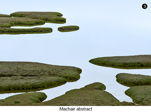 This unofficial car parking area, sits in a not too deeply potholed area of well used ground, that at first sight, does not look to be very wide at all. Yet is still easily wide enough, to accommodate a couple of SUV sized vehicles. So if there is no one parked here, you should have absolutely no trouble, parking even quite a large sized vehicle here safely. But obviously you will need to make sure, the rear of your vehicle is not sticking out into the road and oncoming traffic. By tucking your vehicle right up to the edge of the grass, nearest to the side of the loch. We found the best time to be here for wildlife watching and photography, was at low tide. When the whole basin had completely drained out, but that always seemed to leave several large pools of water, sitting on top of the sand, as shown in SHOT 1 on the left. Where flocks of birds, would congregate in large numbers to feed. If you have brought a flask of tea or coffee with you (and if not why not?), then this is a really good spot to enjoy some refreshment, as you watch the wildlife feeding and then try to name all the different types of bird, that you are going to see here. OK, I did think it might be a good idea to grab a shot of a bird in flight for you, as shown in SHOT 2 below. But wildlife photography just isn't my thing and I know, it shows in the shot below. But for you folks out there who are into bird and wildlife photography, then you will definitely enjoy yourself at this location. And if I am going to allow myself an excuse or two, as to why I am so bad at wildlife photography? Well the first thing I would say, is I am not really geared up for it, nor do I practice it, nor does it float my boat. Which means that me having taken anything at all to show you, is akin to a miracle. So hey, stop your laughing at the back there! Then, after shooting the wildlife at low tide, continue on the A859 heading in the same direction, for another few miles or so, until the roads starts to bend around to the left, as it then begins to head inland and up a slight incline. You will then come to a small area of salt marsh and open water on your right, Map view, Street view. That has lots of little green islands in it (commonly known as Machair in Scotland), surrounded by unusually shaped reflective pools. |