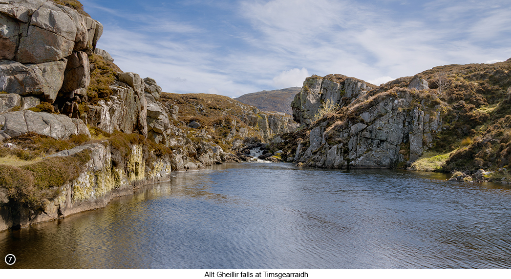 I am now going to take you much further up the island and onto the Isle of Lewis, to photograph the amazing Mangersta Sea stacks and the standing stones at Callanish. But first, I am going to take you to the little known Allt Gheillir falls at Timsgearraidh, as shown in SHOT 6 to the right. Which is certainly worth a look with your camera and perhaps an hour or so of your time. If for no other reason than you are going to drive past these falls anyway and they look so pretty, sitting right next to the B011 road. So continue heading North on the A859 for 38 miles, until you reach a left turn onto the A858, Map view, Street View and turn left here. Then continue driving for another 5 miles or so, until you reach a turn off for the B011 on your left in the village of Garrynahin, Map view, Street view. Then continue driving for another 18 miles, until you reach a large, official, but totally unmaintained car park on your right, Map view, Street view. That is situated just in front of a modern concrete bridge and park here. You will still not be able to see the falls just yet. So walk towards the bridge and then across the road, as you keep an eye out for fast moving vehicles, coming at you from both directions. This stretch of road has an unrestricted speed limit and is far away from any populated areas. So the young guns who live near here, enjoy nothing more than driving down this road at high speed. You will then see the falls, as well as a small abandoned fisherman's bothy up the hill to your left and the tiny but pretty, Allt Gheillir falls straight in front of you. |
