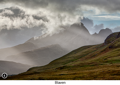 locked onto me. So I quickly set up my camera on the tripod, framed up a shot and pressed the remote shutter release as I set off walking briskly in a 30 foot circle away from the camera and back again. I then grabbed the tripod to move my camera into a different composition and repeated this process for several more times until they finally began to overwhelm me. But in the end I managed to get around 40 minutes of photography and which resulted in me grabbing several very usable shots and all for the cost of about 6 tiny bites - and I was wearing a sleeveless shirt as I did this! Myth 4 - Scottish mountains are too small for photography - I first heard this one around 10 years ago, when I was talking to an American friend about organising a workshop for his group over here and who then went on to start joking with me about the disappointing size of the Scottish mountains at only around 3,500 feet, when he was used to shooting mountains that were three or four times taller than that. And at first I had to agree with him and I even started to feel a little bit disappointed with the limited size of our mountains compared to theirs. But then some time after and around when I was taking this shot shown on the right - street view - map view, I finally began to realise, that far from our mountains being too small, they were in actual fact just the right size. You see with our mountains not being too big, it means it is then up to us to decide how big we would like to make them appear in the shot. Whereby if I put on my longest lens and zoom right in for the detail, I can make any mountain seem huge and entirely fill the frame with it, as shown in shot 1. Or I can make them look really small, but still keep their interesting shapes using a wide angle lens, as shown in shot 3. Or I can make them look just the right size with a medium zoom lens as shown here to the right in shot 4. So even |