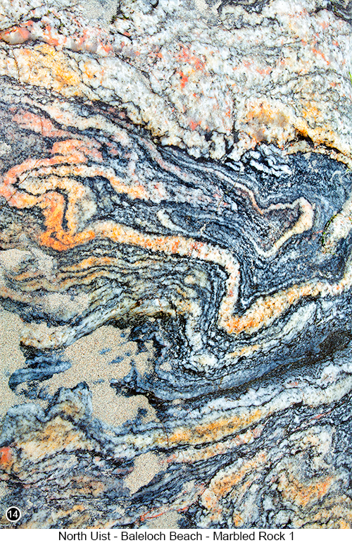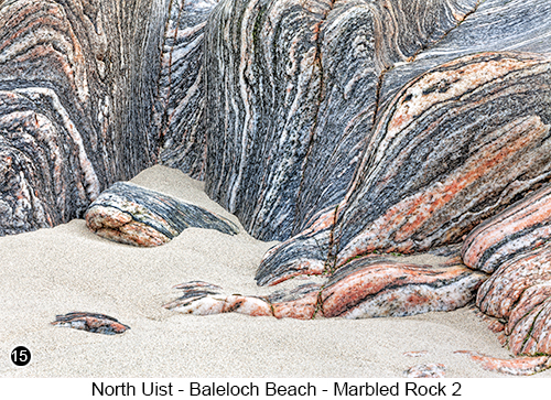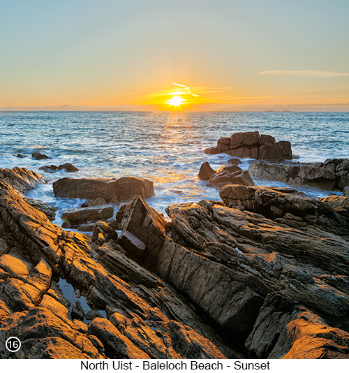 Then after taking your shots of the 'Black House' as shown above, continue driving South on the B893 until it meets up with the A865 and then continue driving on for another 30 miles or so towards our next destination, which is the tiny sandy cove at Baleloch, but which has some small but amazing rock structures hidden away within it and which also happens to be a great location for a sunset shoot. Although as I now look at SHOT 16 below right, I can now see how I really haven't done this location justice. But my excuse for this so-so shot, is that I was only there for one evening and this was the best I could do, so I will have to go back and try to get something better. |