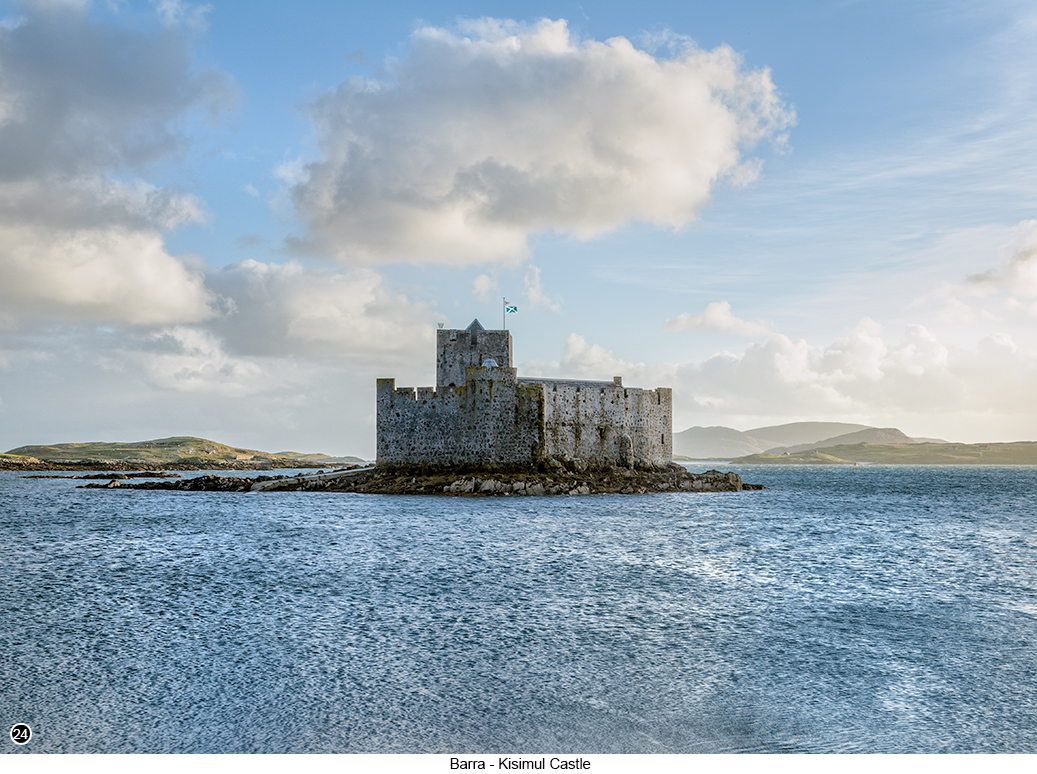 Then continuing on from the Isle of South Uist, I am now going to take you over to the final destination in my whirlwind tour of the Outer Hebrides and the tiny island of Barra. So carry on driving all the way South to the very end of the A865 and the tiny ferry terminal at Lochboisdale Street View, Map View. Where you can now board a ferry at Lochboisdale, for the very pleasant short hop over to the Island of Barra and which when it arrives on Barra about 30 minutes later, disembarks at Castle Bay, to a view of the tiny but very romantic Kisimul Castle, as shown in SHOT 24 below. I believe the name "Kisimul" is pronounced as 'Kissy-Mule' by most of the locals by the way, or at least that is the way it was being pronounced in the hotel we were staying at that overlooked the bay. |