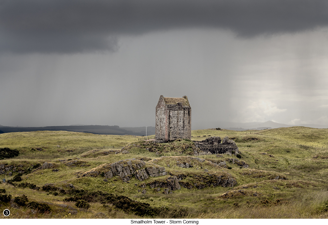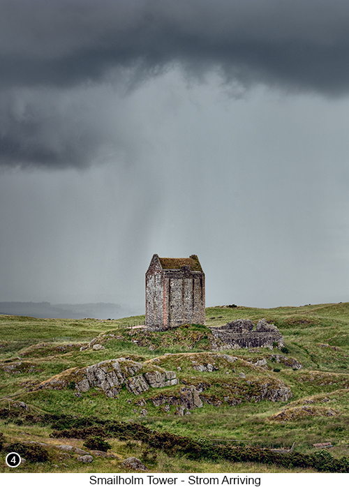 How to get there - From the city of Newcastle, drive North along the A696 heading towards the village of Elishaw Map View, then continue driving straight on passed Elishaw, as the A696 then becomes the A68 and continues to head North towards the village of Jedburgh Street View, Map View. Now look for the sign that points you towards St Boswells and the 'Visitor Attractions' that can be found further along the B6404 and take this road Street View, Map View. Then continue driving on for several more miles, until you see a left turn signposted for the Smailholm tower and turn left here Street View, Map View. You should now be driving up a narrow, single width track, that starts to rise slowly, as it climbs up a low hill and where you will soon come to a farm house, that has several large outbuildings situated on both sides of the road, surrounding a working farmyard area and that you then have to drive through to get up to the tower. And yes you are definitely allowed to drive through this working farmyard by the way and at any time of day, although I must admit it can feel more than a little bit uncomfortable if the farm staff are working in the yard, as you then try to negotiate your way around lots of large agricultural machinery, as well as a long line of agitated cows waiting to be milked and who have absolutely no intention of moving out of your way. So it can definitely feel, as if we shouldn't be allowed to drive through the centre of this farm whenever we like, but as I said just a moment ago, you are allowed, as this is the only way to get to the tower. When we were driving towards Smailholm Tower and about 50 miles away, the sun was shining brightly and it was sticky hot, but with towering, white, cumulus clouds, gathering menacingly on the far horizon and straight in the direction we were headed. I thought to myself mmm, they look very interesting, but could we get there before the light disappeared under those clouds, as they were obviously the precursor to a major storm that now seemed to be brewing all around us. Then as we drew closer and about 20 miles from the tower, we started to drive through areas of localised flooding and deep pools of water laying across the road and my excitement began to mount. On we drove, with one minute being bathed in harsh bright sunshine and where the scenery all around us looked completely bone dry, to then drop down a hill into a tiny village the next minute, where everything was steaming wet and dripping with water and the central street looked more like a fast flowing river. I began to think to myself "bloody typical", we are going to get there just in time to see the clouds move in and everything go black, so that we can hardly see a thing and then to top it off, we are probably going to get stuck on top of the Lady Hill Crag, surrounded by a localised flooding event! Anyway, I tried to push these negative thoughts out of my mind, as we drove on towards the fast approaching towers of cloud and where I began to put my foot down even harder, which made my poor, long suffering wife, start to moan to me about such things as "do we need to drive so fast?" and "can't we slow down and just enjoy the scenery?" etc., as she hung on tightly to the door handles and began leaning into the bends, until we finally got into the Smailholm Tower car park and where I threw on my 70/200 zoom and leapt out of the car, to start shooting the scene as if my life depended on it. |