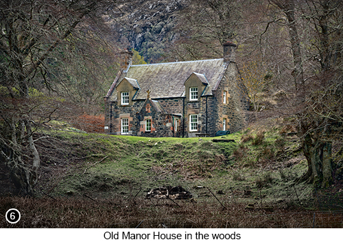 From the 'T' junction just before you reach the car park, you will see a private road to your left, that runs through some white gates that are normally left open. If you walk through these gates and follow the road a little way around, as it arcs to the right. Until you are aligned with the old Manor house directly behind you, as shown here in SHOT 6 below left, but looking out towards Tioram Castle as shown in SHOT 2 above. You will then be standing in the exact spot, where I chose to setup for a long exposure shot of the castle at high tide, as well as to spin my camera around on the tripod, to grab a shot of the old Manor House directly behind me, which is again shown in SHOT 6 below left. If you then walk to your right and back towards the car park, you will see at low tide, that there are some old stone steps, that lead down to the beach on your left and where you can then walk out across the beach to shoot the castle as you move towards it, as shown in SHOTS 1 and 3 towards the Top of this page. |